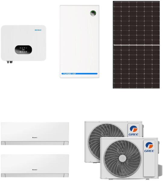 Renac Solar S napelem szett - 12 db napelem, 5 kW inverter, 9, 5 kW energiatároló és 2 db 2, 7 kW klíma (Renac Solar S)